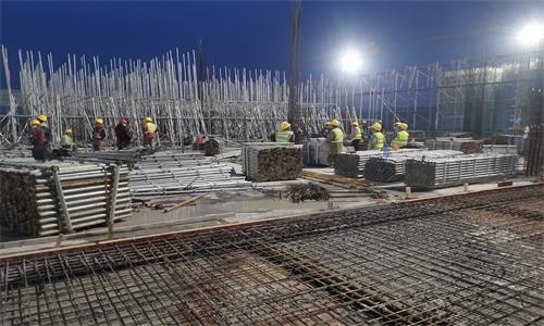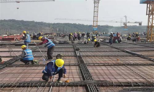 建筑工人在華為新金寶高端制造基地1號廠房頂部作業(yè)