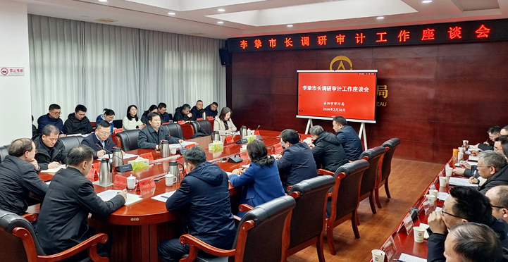 2月26日,市委副書(shū)記、市長(zhǎng)李摯赴市審計(jì)局調(diào)研審計(jì)工作,并主持召開(kāi)座談會(huì)聽(tīng)取全市審計(jì)工作情況匯報(bào)。他強(qiáng)調(diào),要嚴(yán)格按照省委“一手抓解放思想、一手抓貫徹落實(shí)”的要求,錨定“三高四新”美好藍(lán)圖,堅(jiān)持市委“1376”總體思路,推動(dòng)全市“八大行動(dòng)”,以起步即沖刺、開(kāi)局即決戰(zhàn)的精氣神,做好全年審計(jì)工作,為譜寫(xiě)社會(huì)主義現(xiàn)代化“七個(gè)岳陽(yáng)”新篇章貢獻(xiàn)審計(jì)力量。副市長(zhǎng)秦山成一同前往。